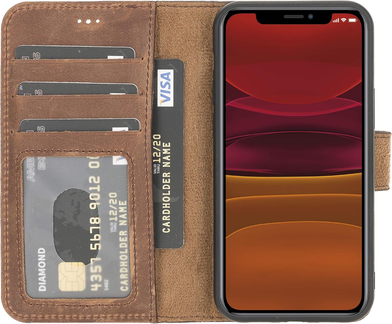 - The perfect option for those who want more with a 2-in-1 with a case and wallet for flexibility and functionality. The magnet wallets are handcrafted with genuine leather and reinforced with polycarbonate to stay firm on the iPhone and never fall off. best protective case compatible with iPhone 12 Mini is perfect gift for men and women.